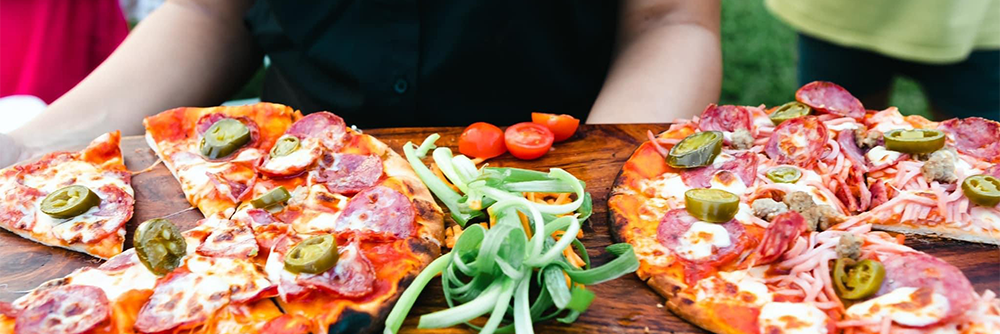 We serve your guests for 1.5 hours minimum a selection of our delicious woodfire pizzas beginning with appetizer pizza followed by our pizzas from our menu.